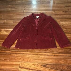 L.L BEAN fully lined burgundy corduroy blazer jacket, front pockets, light stretch. Vtg retro look. Great layering