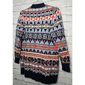 L.L.BEAN women's cotton fair isle western Aztec print knit cardigan MP.