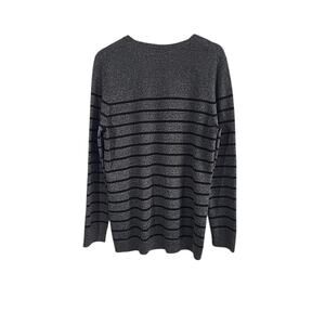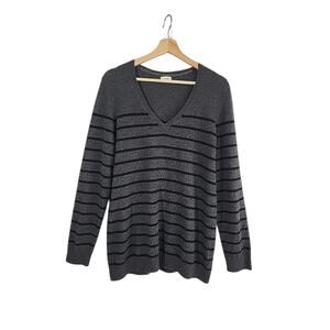 L.L. Bean 100% Cashmere V-neck Sweater Men's Medium Charcoal Gray Stripe Office
