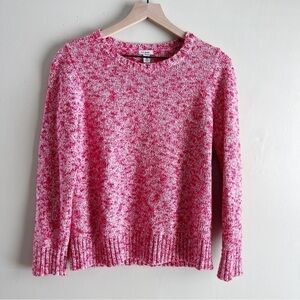 L.L.Bean 100% Cotton Pullover Knit Sweater in Marled Red White, Size Medium