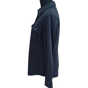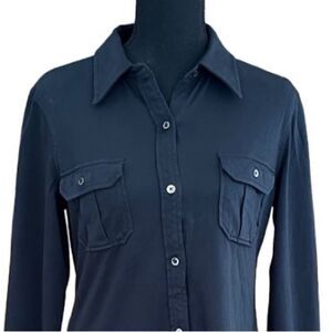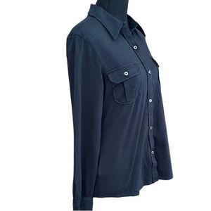 LL Bean 100% cotton black long sleeved button front shirt, size S. Button chest pockets, button cuffs, slightly rounded bottom hem. Approximate measurements are pit to pit 18”, length from shoulder approximately 24”.