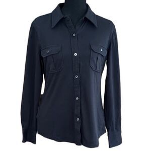 LL Bean 100% cotton black long sleeved button front shirt, size S.