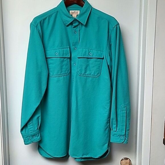 L.L.Bean Aqua Blue long sleeve button up chamois shirt M Tall