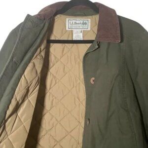 This classic, vintage-inspired L.L.Bean women’s barn coat in olive green canvas delivers timeless outdoorsy style with exceptional quality. Made from durable 100% cotton canvas, it features a soft brown (chocolate, espresso) corduroy collar, quilted tan interior lining for extra warmth, and plenty of pockets for everyday practicality. Size Small (Regular). Item ID 267097. The coat is in like new condition — no stains, tears, pilling, or signs of wear. It looks barely worn and has been well cared for. A perfect fall/winter staple that pairs effortlessly with jeans, boots, or outdoor layers. The color of the lining is a neutral tan. Insulated with 3M thinsulate for extra warmth without bulk. Women’s size Small (Regular), fit is slightly oversized to accommodate layers Button front Two front flap pockets; subtle side pockets (see final picture) chore jacket, field jacket, barn coat, adirondack, like new, EUC, excellent used condition, L.L.Bean jacket, L.L.Bean barn coat, womens barn jacket, olive green jacket, canvas jacket women, quilted jacket women, corduroy collar jacket, field coat women, chore coat women, vintage L.L.Bean style, outdoor jacket women, classic barn coat, green canvas coat, fall jacket women, winter jacket women, L.L.Bean small