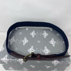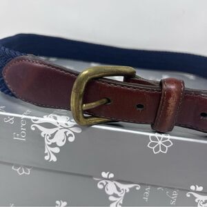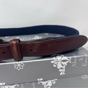 L.L. Bean Braided Rope Leather Ends Brass Buckle Belt Vintage