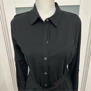L.L.Bean Button Front Knit Belted Dress Black Size Medium Petite Career Wear NWT