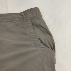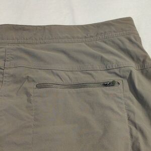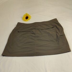 Stylish tan skirt featuring convenient pockets. Perfect for casual outings.