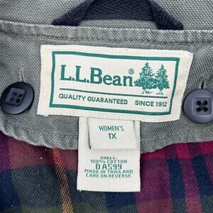 L.L.Bean Chore Canvas Coat with Removable Plaid Primaloft Lining Vintage Green Barn Jacket.