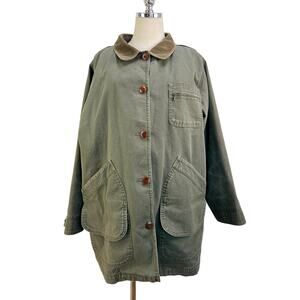 L.L.Bean Chore Coat with Removable Plaid Lining Vintage Green Barn Jacket