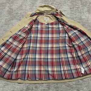 L.L.Bean Coat Womens 2X Tan Hooded Button Front Plaid Lined Polyester Raincoat