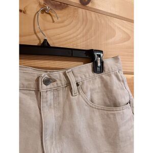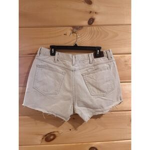 L.L.Bean cut off high waisted soft denim shorts in a khaki color. Measurements are listed below.