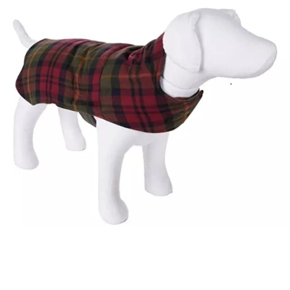 The L.L.Bean Reversible Field Coat for Dogs in size small features a classic plaid on one side and solid on the other.