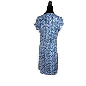 L.L.Bean Dress Size M Blue Performance V-Neck Short Sleeve zipper pockets