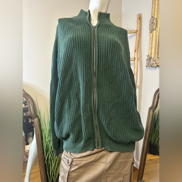 Stylish green zip-up sweater with a ribbed texture. Perfect for layering. Eclectic Grandpa, Preppy, Fall