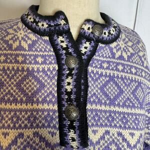 L.L.Bean Fair Isle Nordic Cotton Henley Sweater Purple 90s Vintage Women's Small