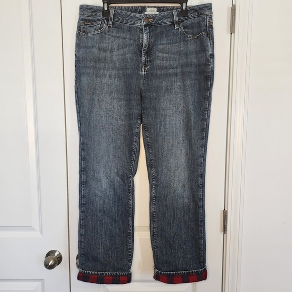 Keywords: L.L.Bean jeans, denim pants, plaid cuff jeans, red plaid, size 16 regular, womens jeans, casual jeans, dark wash denim, Favorite Fit, cuffed jeans, LL Bean, denim, pants, regular fit, plaid