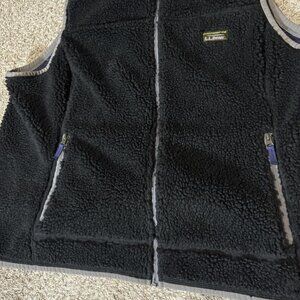 L.L.Bean Fleece Vest Mens XL Black Sherpa High Pile Lined Full Zip Pockets