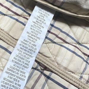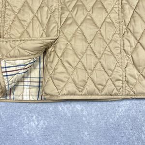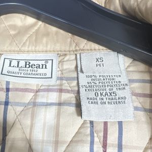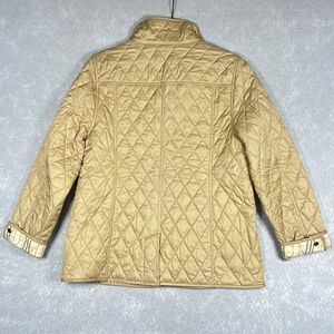 Up for sale: L.L.Bean Gold Quilted Jacket Women Small Tan Nova Check Plaid Lined Snap Button