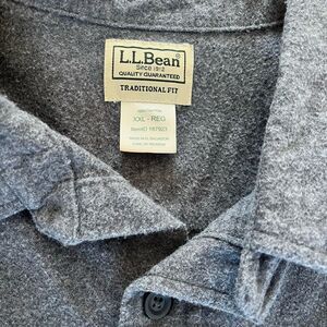 Stylish gray button-up shirt by L.L. Bean. Features two chest pockets and a classic collar.