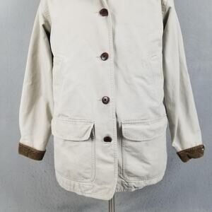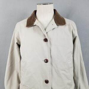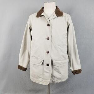 L.L.Bean Jacket Womens Medium Khaki Brown Corduroy Collar Barn Chore Canvas Coat
