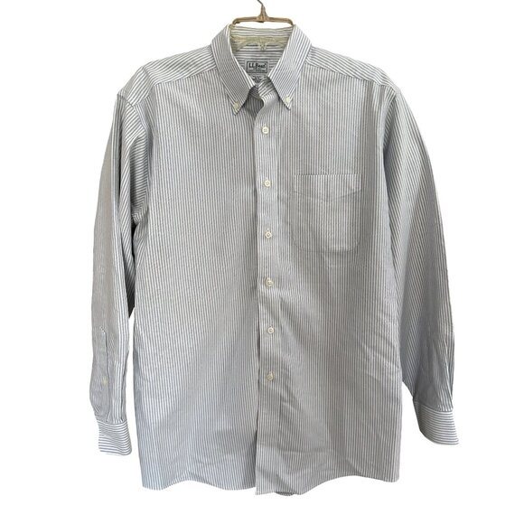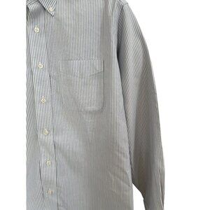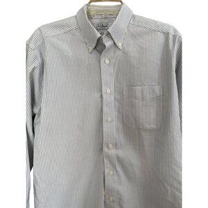 L.L.Bean Men's Button Down Long Sleeve Collared White and Blue Striped Shirt Siz