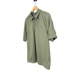 Ready for the trail or the golf course! This L.L.Bean Performance Polo in a handsome olive/sage green features a half-zip neck and a technical polyester mesh fabric that's perfect for outdoor activity. The mesh knit provides exceptional breathability and quick-dry, moisture-wicking comfort. It has a slightly structured collar, clean stitching details, and a small chest pocket with a unique side entry.
