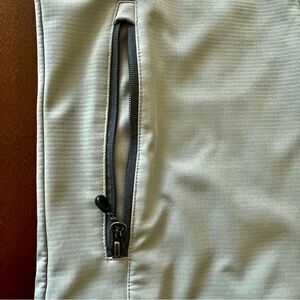 L.L.Bean Men's Windproof Softshell Jacket, Size Small. This jacket features two side pockets and one chest pocket all with zipper closures to keep your small belongings secure. The cuffs are adjustable for a comfortable and secure fit. The jacket is perfect for outdoor activities or everyday wear. The jacket is in good used condition with some wear on the adjustable cuffs.