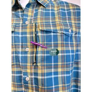 L.L.Bean Mens L Blue/Yellow Checkered Long Sleeves Button Pocket Shirt Preppy
