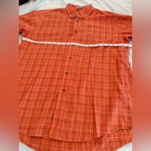 LLBean Mens Large Orange Plaid Traditional Fit Wrinkle Resist Short Sleeve Button Up. One flat front pocket. Size excellent used condition. No rips, stains or defects. Please see pictures for measurements.