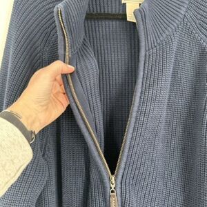 L.L. Bean Men's Ribbed Knit Cotton Full Zip Cardigan Sweater Navy Blue Size Large