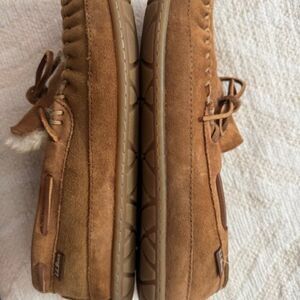L.L.Bean Men's Shearling moccasins, Tan, size 10W. Great pre-owned condition.