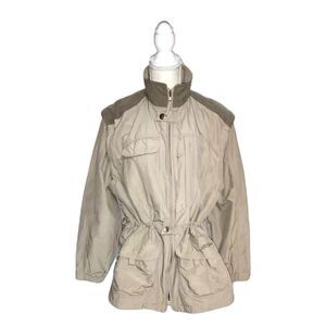 Stay stylish and practical on your outdoor adventures with this versatile L.L.Bean beige fishing jacket. Designed with function and comfort in mind, it features a cinched waist for a flattering fit and removable sleeves, allowing you to easily convert it into a sleeveless vest for warmer days. The deep, functional pockets provide plenty of space to store your essentials while keeping your hands free.