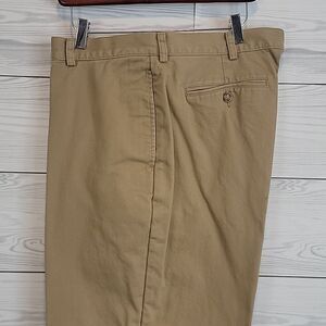 Plaid flannel lined for warmth natural fit chinos by L.L.Bean with a high rise, flat panel front, and iron creases. Great pre-owned condition with normal signs of wash and wear, including a very light mark on pant leg. See pictures.