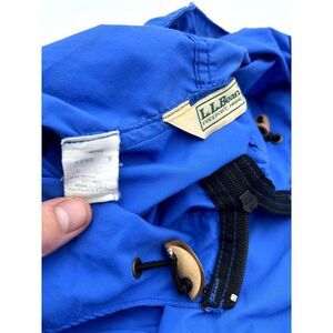 This bright blue L.L.Bean men's jacket offers reliable protection from light rain and wind with its water-resistant construction and attached hood. Designed for comfort and practicality, it features long sleeves and a relaxed fit, making it ideal for outdoor activities or everyday wear. This versatile jacket is a classic choice for staying dry and comfortable in unpredictable weather.