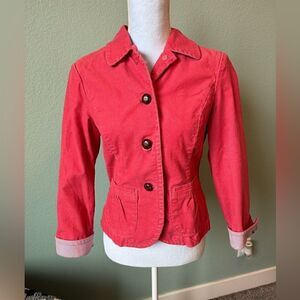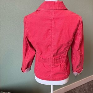L.L.Bean Pink Cropper Corduroy Blazer Size 6 Petite with Embroidered Sleeve Det