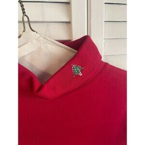 In excellent condition and without noticeable flaws. Solid color with a beautifully embroidered Christmas tree on left side of turtle neck (see photo). Machine wash cold with like colors. Tumble dry low.
