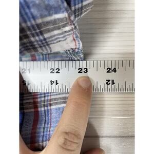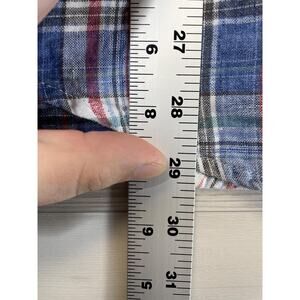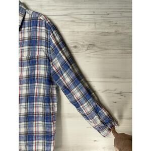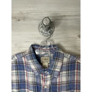 L.L.Bean Shirt Mens Medium Blue Red Plaid 100% Linen Long Sleeve Button Down