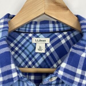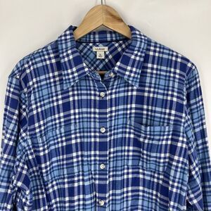 LL Bean Shirt Size XL Womens Blue White Plaid Flannel Top Button Up Long Sleeve