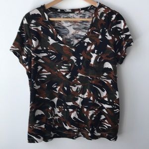 Really cute little tee with an abstract Camo print, size small from LLBean’s Signature line. Oversized with a deep v neck. Excellent condition from my smoke free and pet free home!