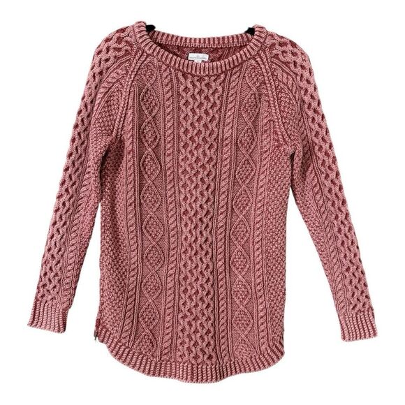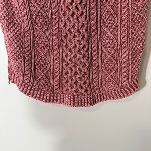 L.L. Bean Signature Womens Chunky Pink Cable Knit Fisherman Sweater Size Small