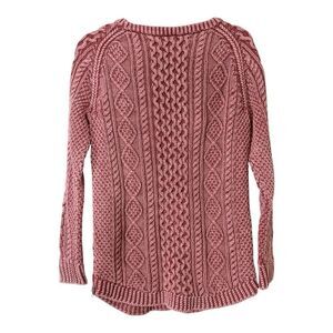 L.L. Bean Signature Womens Chunky Pink Cable Knit Fisherman Sweater. Size Small.