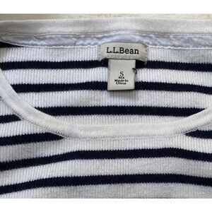 L.L.Bean Size S White Navy Striped Blend Ribbed Pullover Sweater Pima Cotton