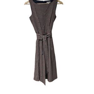 This dress is perfect for any occasion! It is made of a lightweight and comfortable 100 % Cotton fabric, and it has a flattering fit and flare silhouette. The dress features a round neckline, a sleeveless design, and a belted waist. It is in excellent almost new condition.