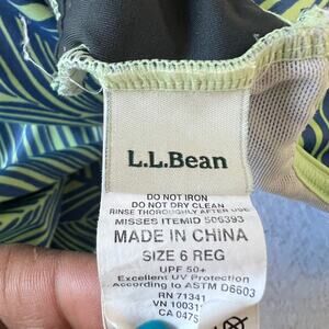 L.L.Bean Swimsuit Womens 6 Blue Green One Piece Leaf Print Built in Bra UPF 50+