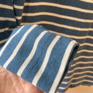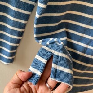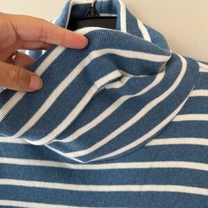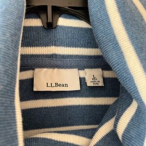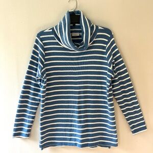 L.L.Bean Sz L Knit Stretch Pullover Sweatshirt Blue Striped Cowl Collar Sweater