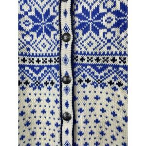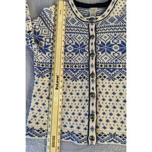 L.L.Bean Sz M Nordic Fair Isle Sweater Cardigan Blue Ivory Women's Metal Buttons. Sweater in great preowned condition. Measurements shown in photos