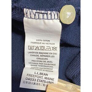 The L.L.Bean Traditional Fit Polo Top is a navy blue, men's XL REG crew neck made from 100% cotton, featuring a side slit hem and lower back hem for style and comfort.
