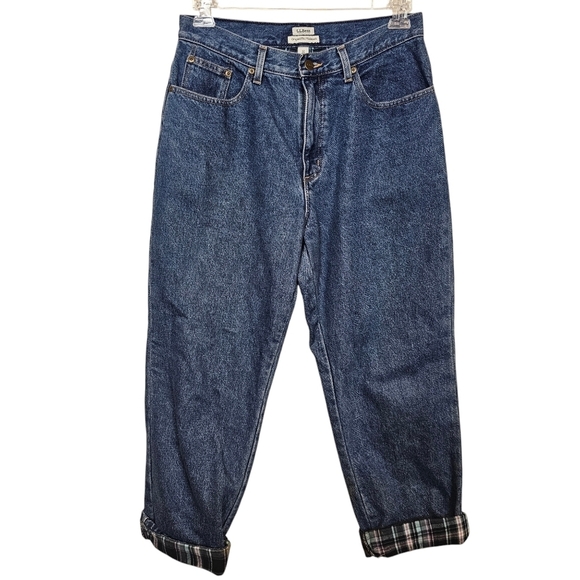 L.L.Bean Vintage Insulated Plaid Original Fit Relaxed High Rise Jeans Cuffed