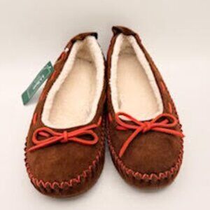 L.L.Bean Wicked Good Hearthside Moccasin Slippers Brown Suede Women’s Size 8 Med