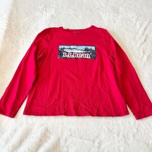 L.L.Bean Winter Graphic Long Sleeve Tee - Red - Size Small Petite